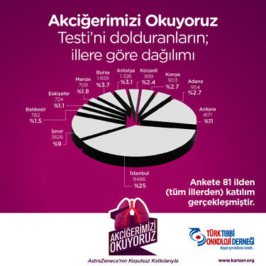 Türk Tıbbi Onkoloji Derneği’nin (TTOD) toplum bilgilendirme platformu aracılığıyla, AstraZeneca Türkiye’nin koşulsuz desteği ile akciğer kanseri risk faktörleri hakkında toplumu bilgilendirmek amacıyla hayata geçirdiği “Akciğerimizi Okuyoruz” internet platformundan elde edilen sonuçlar kamuoyu ile paylaşıldı. Platform üzerindeki soruları cevaplayan kişilerin verilerine göre en fazla 18 – 49 yaş grubundaki kişiler ve her iki katılımcıdan biri sigara içiyor. Akciğer hastalığının erkeklerde daha fazla görüldüğünü de ortaya çıkaran sonuçlara göre kronik obstrüktif akciğer hastalığının (KOAH) cinsiyete göre dağılımında ise erkek ve kadın oranları birbirine yakın çıktı.