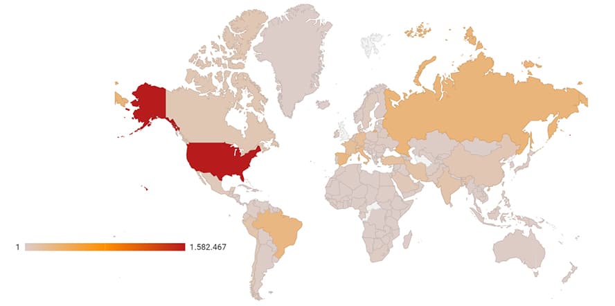 Korona virüsü (Covid-19) salgınından en çok etkilenen ülke olan Amerika Birleşik Devletleri’inde (ABD) ölü ve hasta sayısı artmaya devam ediyor. Dün itibariyle ABD’de korona virüsü nedeniyle 1530 kişi daha öldü ve 19 bin 974 yeni vaka tespit edildi. Böylece toplam ölü sayısı 95 bine ve vaka sayısı 1.5 milyona yükseldi. Covid-19 testi yapılan kişi sayısı 12 milyon 647 bini, iyileşen hasta sayısı da 361 bini geçti. Öte yandan New York, kenti ABD’de salgından en fazla etkilenen eyalet olmayı sürdürüyor. New York’ta 362 bin 630 vaka görüldü ve 28 bin 648 kişi öldü.