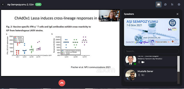 Oturumda konuşan Oxford aşısını geliştiren, Oxford Üniversitesi Aşı Bilimi Profesörü ve Vaccitech Kurucu Ortağı Prof. Sarah Gilbert, Koronavirüs, MERS ve bazı adenovirüslere yönelik yaptıkları çalışmalar hakkında bilgi verdi. Nisan 2021 itibariyle Koronavirüse karşı 12 klinik çalışma yaptıklarını açıkladı. İkinci doz uygulama aşamasında yaptıkları çalışmada bağışıklık yanıtının çok arttığının gözlendiğini belirtti.