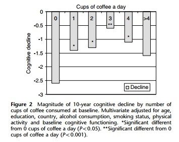 İsveç ve Finlandiyalı araştırma grubunun 1972, 1977,1982 ve 1987 yılları arasında 1.409 kişi ile yapmış olduğu başka bir araştırma ise günde üç ila beş fincan arası kahve içenlerde Alzheimer riskinin önemli ölçüde düşütüğü gösteriyor.(2)