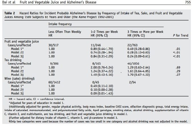 Fruit and Vegetable Juices and Alzheimer’s Disease: The Kame Project