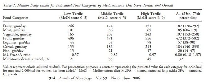 Columbia Üniversitesinin yapmış olduğu bir araştırmada Akdeniz diyeti ile Alzheimer riski arasındaki ilişki ele alındı ve araştırma sonunda Akdeniz diyeti uygulanan deneklerin diyeti ne oranda uyguladığına bağlı olarak Alzheimer riskinin düştüğü veya yükseldiği görüldü. Başka bir ifade ile Akdeniz diyetini çok uygulayanlarda daha az, az uygulayanlarda ise daha fazla Alzheimer vakasına rastlandı. 2258 sağlıklı kişiyle ile başlayan bu araştırma 4 yıl devam etti ve 4. yılın sonunda araştırmaya katılanların 262 sinde Alzheimer görüldü.(7)