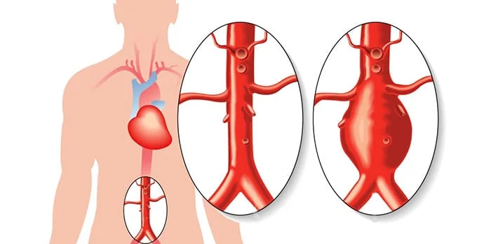 Vücudun ana arterini etkileyen anevrizma türüdür. Abdominal aort anevrizması (AAA) ve torasik aort anevrizması (TAA) olmak üzere 2 çeşidi vardır. AAA en yaygın olanıdır. Karın, pelvis ve bacaklara kan taşıyan ana damarda (aortta) gelişir. 60 yaş üstü sigara içen veya yukarıdaki risk faktörlerinden birden fazlasını taşıyan erkeklerde oluşma olasılığı daha yüksektir. En tipik belirtileri karın, sırt veya bel bölgesinde ağrıdır. (6,7)