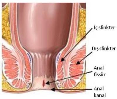 Tedavi: Anal fissürlü hastalarda iç sfinkter istirahat basıncı yüksektir. Bu basınç artışının fissürün nedeni mi yoksa sonucu mu olduğu belli değildir. Ancak iç sfinkter basıncını azaltan her işlem fissürün iyileşmesini kolaylaştırır. Yeni başlayan olgular konservatif yöntemlerle tedavi edilir. Bu tedavinin kuralları kabızlık ve ishalin düzeltilmesi, kısa süreli analjezik ve kortizonlu kremler, ılık oturma banyolarıyla sfinkter spazmının azaltılmasıdır.