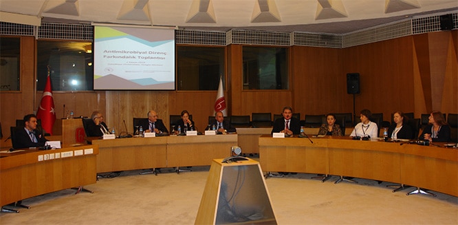 Antimikrobiyal direnç kanserden daha çok ölüme yol açacak!“Antibiyotiklere ya Bilinç gelişir ya da Direnç” sloganıyla Hasta ve Sağlık Çalışanı Güvenliği Platformu (HSÇG) tarafından yürütülen antimikrobiyal dirence karşı bilgilendirme ve faaliyet oluşturma toplantısında önemli açıklamalar yapıldı. Hacettepe Üniversitesi’nin ev sahipliğinde basına yönelik yapılan toplantıda Prof. Dr. Serhat Ünal ve Prof. Dr. Çiğdem Kayacan Platform’un ve AMD Çalışma Grubu’nun yaptığı çalışmaları anlatırken; Prof. Dr. Selçuk Kılıç Türkiye’nin AMD Eylem Planı’nı anlattı. Prof. Dr. Patrick Murray AMD ile ilgili dünyadaki iyi uygulamalardan, TYBD Temsilcisi Prof. Dr. Necati Gökmen ise yoğun bakımlarda antimikrobiyal dirençten bahsetti. Son olarak Prof. Dr. İsmail Ağırbaş, Ankara Üniversitesi’nde yürütülen kan kültür maliyetinin etkinliğini ve direncin ekonomik yükü çalışmasını anlattı.