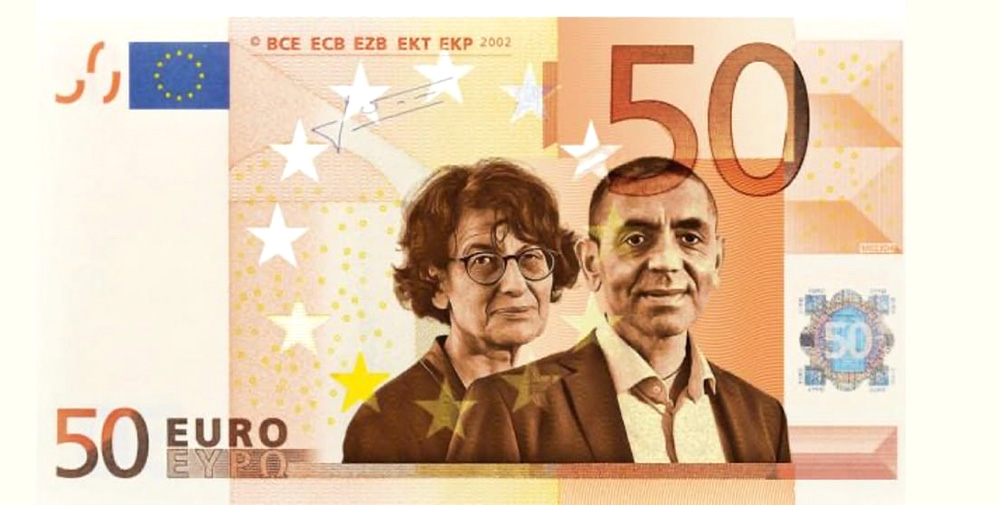 Tedavüle sürülüşünün 20’inci yılında yeniden tasarlanmasına karar verilen Euro banknotlarından birinde BioNTech kurucuları Uğur Şahin ve Özlem Türeci’nin fotoğrafının yer alması istendi. Avrupa Birliği’nin (AB) ortak para birimi Euro banknotları için yeni motif arayışına giren Avrupa Merkez Bankası’na (ECB) Avrupa Parlamentosu’ndan (AP) BioNTech kurucuları Prof. Dr. Uğur Şahin ve Dr. Özlem Türeci önerisi geldi. AP’nin Alman üyesi Hür Demokrat Partili (FDP) Moritz Körner, Şahin ve Türeci’nin fotoğraflarının banknotlardan birinin üzerine basılmasını istedi.