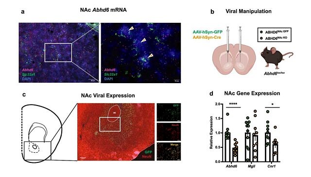 Endokannabinoid sistemi, modern tıpta potansiyel tedavi hedeflerinden biri olarak görülmekte ve bu alanda yapılan araştırmalar hızla artmaktadır. Nature Communications dergisinde yayımlanan çalışmanın baş araştırmacısı Dr. Stephanie Fulton, ABHD6 enziminin nucleus accumbens bölgesinde 2-AG adlı endokannabinoid molekülünü parçaladığını belirtiyor. ABHD6 enziminin beyin üzerinde nasıl bir etki gösterdiğini anlamak için genetik yöntemlerle bu enzimi hedef alarak farelerde deneyler yaptılar.