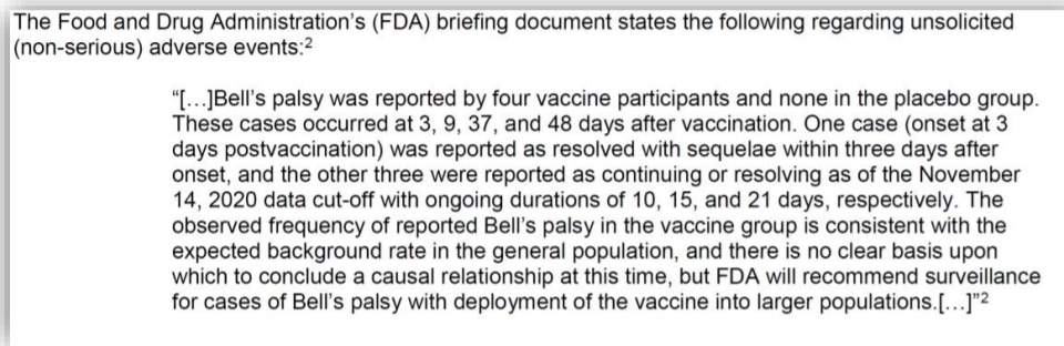 1- Repajic M, Lai XL, Xu P, Liu A. Bell's Palsy after second dose of Pfizer COVID-19 vaccination in a patient with history of recurrent Bell's palsy. Brain Behav Immun Health. 2021;13:100217. doi:10.1016/j.bbih.2021.1002172- V-safe After Vaccination Health Checker3- Coronavirus (COVID-19) Update: FDA Authorizes Pfizer-BioNTech COVID-19 Vaccine for Emergency Use in Adolescents in Another Important Action in Fight Against Pandemic4- Background document on mRNA vaccine BNT162b2 (Pfizer-BioNTech) against COVID-195- Addressing male sexual and reproductive health in the wake of COVID-19 outbreak.Journal of Endocrinological Investigation (2021) 44:223–231 https://doi.org/10.1007/s40618-020-01350-16- Myocarditis and Pericarditis Following mRNA COVID-19 VaccinationYAZIYI PAYLAŞ