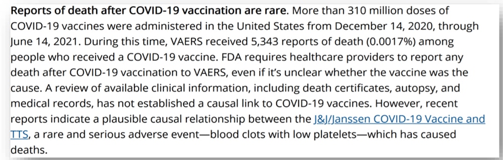 Hem Biontech/Pfizer hem de Sinovac ile ilişkilendirilen herhangi bir ölüm rapor edilmemiştir. Görülen tüm yan etkiler kontrol edilebilir ve geçici yan etkiler olarak bildirilmiştir. Henüz aşı ile ilişkisi kesin olarak ortaya konulmasa da aşıya bağlı ölüm olarak değerlendirilebilecek vakaların J&J aşısı sonrası gelişen pıhtılaşma sonucu ölümler olabileceği bildirilmektedir. Hem Biontech hem de Sinovac için ‘pıhtılaşma’ yan etki olarak görüşmemiştir.