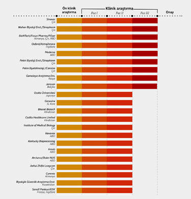 Bir aşı geliştirildiğinde, öncelikle hayvanlar üzerinde deneniyor. Burada olumlu sonuç elde edilirse insanlar üzerinde denemelere geçiliyor. Bu süreç, 3 fazdan oluşuyor. 1. fazda aşı küçük bir grup üzerinde deneniyor. Ciddi bir yan etki göstermezse ve etkin olduğu kanıtlanırsa 2. faza geçiliyor. Burada daha büyük bir grup üzerinde deneniyor.