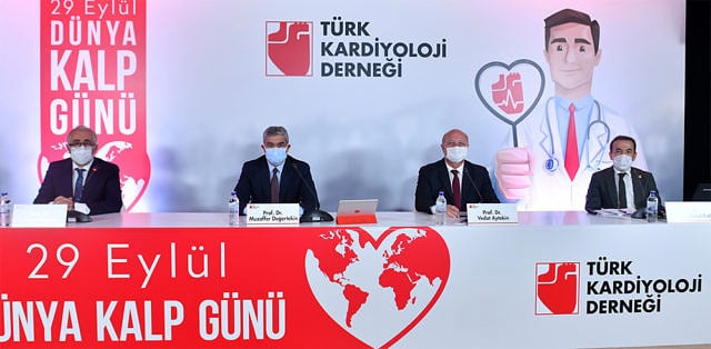 Türk Kardiyoloji Derneği, 29 Eylül Dünya Kalp Günü nedeniyle online bir basın toplantısı düzenledi. Toplantıya Türk Kardiyoloji Derneği Başkanı Prof. Dr. Mustafa Kemal Erol, Türk Kardiyoloji Derneği Gelecek Dönem Başkanı Prof. Dr. Vedat Aytekin, Başkan Yardımcısı Prof. Dr. Muzaffer Değertekin ve Dernek Genel Sekreteri Prof. Dr. Cevat Kırma katıldı. Dernek, kalp sağlığı konusunda farkındalığı artırmak için “Kalp Damar Hastalıklarını Yenmek İçin Kalbi Kullan” kampanyası da başlattı.