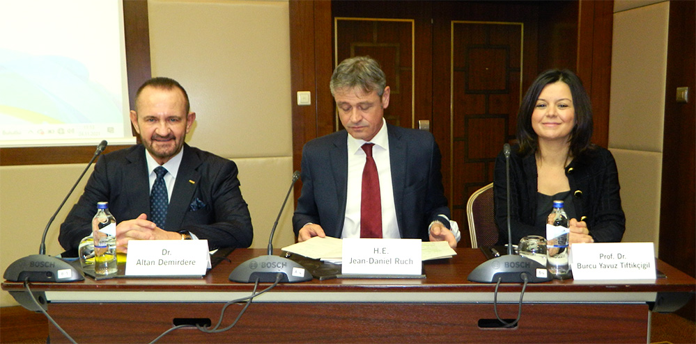 Büyükelçi Jean-Daniel Ruch ise Türkiye ile ülkesi arasındaki ticari ilişkilerin büyüdüğünü vurgulayarak, gelişen ticari ilişkilerin İsviçre firmalarının Türkiye’ye yatırım ilgisini de artırdığını anlattı. Büyükelçi Ruch, “Covid-19 salgınına rağmen geçen yıl Türkiye’nin İsviçre’ye yaptığı ihracat hızlandı ve ticaret hacmi de arttı. Tüm bu gelişmelerle birlikte İsviçreli işletmeler de ekonomik kalkınma kavramını yeniden değerlendirmeye ve stratejilerini bu yönde geliştirmeye başladı. Sürdürülebilir ve yenilikçi ekonomik stratejilerin işletmeleri daha uzun süre ayakta tuttuğu yadsınamaz bir gerçek. Bu kapsamda İsviçre Büyükelçiliği olarak sürdürülebilir kalkınma hedeflerini gerçekleştirmede işletmeleri destekliyor, Türkiye-İsviçre ticari ilişkilerinin gelişerek devam etmesi için çalışmalarımızı sürdürüyoruz” dedi.