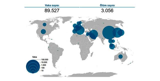 Dünya genelindeki koronavirüs ölümleri üç bini geçti. Ölümlerin çoğu Çin’de görülürken, Çin dışında Çin’de olduğundan dokuz kat daha fazla yeni vaka ortaya çıktı. Çin dışında virüsten en olumsuz etkilenen ülkelerden biri olan İtalya’daki ölü sayısı dün 34’ten 52’ye çıktı.