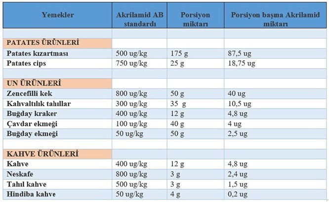 (Asparajin*: Proteinlerin yapı taşı olan 20 amino asitten biridir. Merkezi sinir sisteminin düzenli çalısmasını sağlar, yokluğu sinir ve asabiyet oluşumunu tetikler. Özellikle patates ve tahıllarda bol miktarda bulunur.) Yüksek ısıda pişirilen patates kızartması, cips ve kavrulmuş kahvede de yüksek miktarda akrilamid bulunduğu şimdiye kadar yapılan birçok araştırma ile birçok kez teyid edildi.