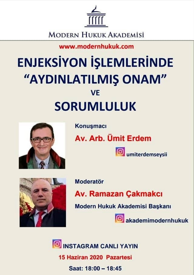 Enjeksiyon uygulamalarında yazılı aydınlatılmış onam gerekip gerekmediğine yönelik belirsizlik, Sağlık Bakanlığı’nın yeni hukuki görüşü ile de sonlanmamış, tartışmalar başka bir boyuta taşınmıştır. Bilindiği üzere; Sağlık Hizmetleri Genel Müdürlüğü’nce 10.06.2019 Tarih’li ve 14500235-401.99 Sayı’lı “Enjeksiyon Uygulamaları Hk Genelge” ile; “Enjeksiyon uygulamaları büyük ameliyei cerrahiye olmadığı için hastaların sözel olarak bilgilendirilmesinin gerekli ve yeterli olduğu, Müdavi Hekim tarafından reçete edilmiş güncel tedavisinin yetkili sağlık meslek mensupları tarafından hastanın reçetesi görülerek yapılması halinde Yazılı Onam alınması zorunluluğu bulunmadığı hususu” belirtilmiş ve bildirilmiş idi.