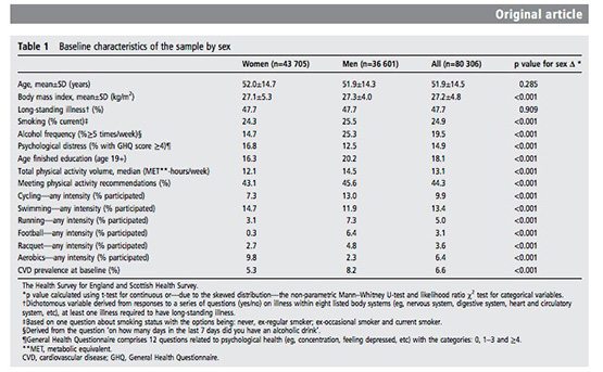 Associations of specific types of sports and exercise with all-cause and cardiovascular-disease mortality: a cohort study of 80 306 British adults