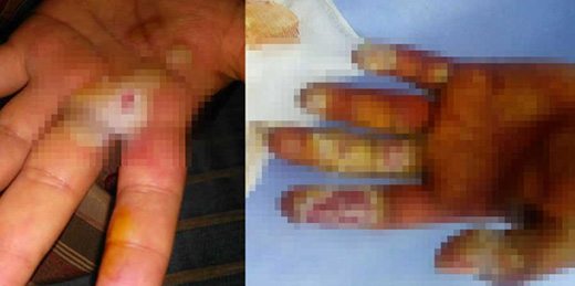 Doktorlar, her iki kalçasında 5×5 santimetre ebatlarında ikinci derece yanık tespit etti, ancak sebebini şantiyeden gelen telefona kadar anlayamadılar. E.B’nin iş arkadaşları iş yerinde yapılan açıklama ile durumdan haberdar olunca hemen E.B’yi arayarak buldukları cismin tehlikeli bir cisim olduğunu, derhal ondan kurtulması gerektiğini söylediler. Telefon ettikleri sırada E.B hala hastanedeydi. Durumdan haberdar olan Hastane yönetimi AFAD ile iletişime geçti. Mahalleye giden AFAD, mahalleyi boşaltıp karantinaya aldı.