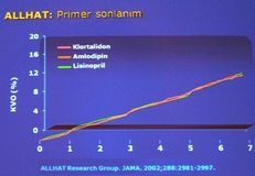 Kan basıncının erken evrede düşürülmesinin daha avantajlı sonuçlar doğuracağını belirten Prof. Dr. Güleç, sözlerini şöyle sürdürdü: “Bir diğer savaşta yeni bir ilaç grubu olan ARB’in Amlodipin’e meydan okuması sonucunda yapılan bir çalışmaydı. Bunun sonucunda pirimer sonlanımda iki ilacın aynı derecede koruma yaptığı gözlemlendi. Bunun yorumunda da berabere kalınmasına rağmen Losartan amlodipin meydan okuduğu için amlodipin prestij tazeledi. Buradan iki tane çok önemli sonuç çıktı; ilki hipertansiyon tedavisinde en önemli hamlenin kan basıncını düşürmek olduğunu anladık. İkincisi de ne kadar erken düşürürsek o kadar iyi sonuç elde edeceğimizi öğrendik. ANBP-2 çalışmasında ise ACE inhibitörüyle diüretiklerin karşılaştırıldığı Avustralya merkezli bir çalışma; kardiyovasküler olay gelişimi ve toplam mortalitenin bu sefer ACE inhibitörleri lehine olduğunu görüyoruz. Aynı kan basıncına rağmen ACE inhibitörleri prognozu daha iyi etkilemişti. Diüretiklerle karşılaştırıldığı zaman. Bu çalışmada kazanan ACE inhibitörü olarak açıklandı. Yorumda ‘rast blokajı yapmak kan basıncını düşürmenin ötesinde fayda sağlar’ deniyor.”