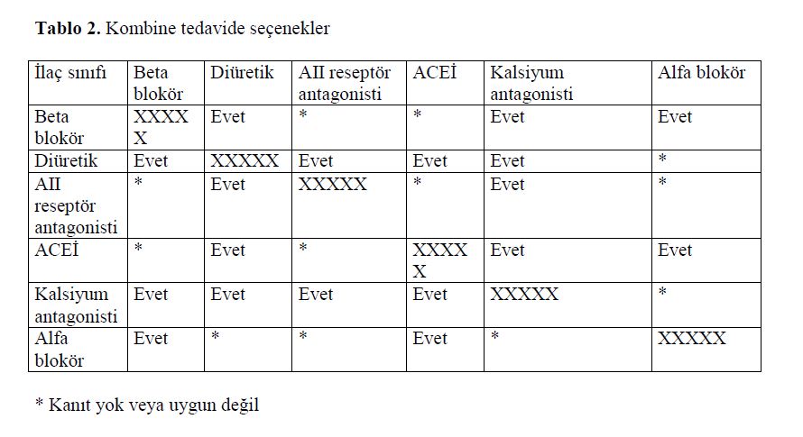 Tedavi değişikliği doz artırımı veya ikinci ilaç eklenmesi şeklinde olabilir. İlk ilaç diüretik değilse ikinci eklenecek ilaç diüretik olmalıdır. Eğer kan basıncı hedef kan basıncından 20/10 mm Hg veya daha fazla ise 2 ilaçla başlamak gerekir.”