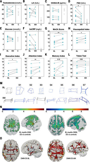 Sonuç: Yedi katılımcıdan altısında bilişsel performans iyileşti. Bu, görsel-mekansal testlerde daha belirgindi. Ayrıca deneklerde yürütücü işlevler (amaca yönelik karmaşık davranışlar), dikkat, epizodik bellekte (günlük olayların hafızası) belirgin iyileşmeler görüldü. Hormon tedavisi konuşma ve konuşulanı anlamayı da iyileştirdi.