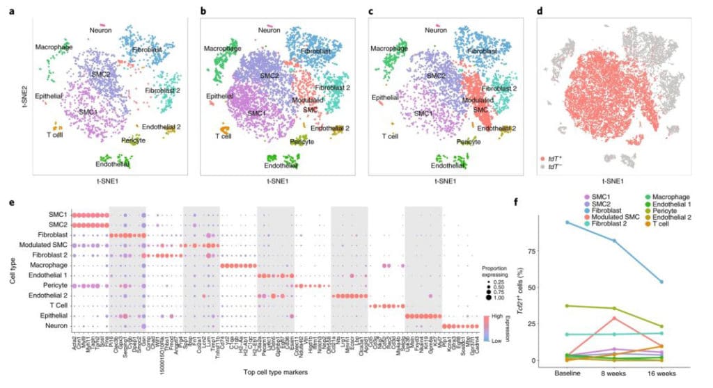 (Not: Aslında düz kas hücrelerinin ateroskleroz sırasında kendilerini başka bir hücreye dönüştürdüğü biliniyordu ama dönüşen yeni hücrelerin neye benzediği bilinmiyordu. Bu konudaki tahminler dönüşen hücrelerin hem faydalı, hem de iltihaplanmayı teşvik eden zararlı immün hücrelere dönüştüğü yönündeydi.)
