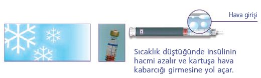 Sıcaklık düştüğünde insülinin hacmi azalır ve kartuşa hava kabarcığı girmesine yol açar.
