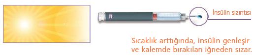 Kalem iğnesini kalem ucunda bırakmak sıcak havalarda insülinin kalem ucundan sızmasına sebep olur. Bu sızıntı sebebiyle kalem içerisindeki insülin azalır.