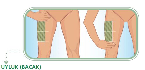 Kasığın 4 parmak altı ile dizin 4 parmak üstünde kalan alan ve pantolon ütü çizgisinin dış kısmı ile pantolon yan dikiş çizgisinin ön kısmında kalan alan içerisine enjeksiyon yapılmalıdır.