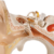 Orta kulak: 1- Timpanik membran; kutanöz, fibröz mukozal bileşenleri vardır. 2- Kavum timpani. 3- Kemikçikler; malleus, inkus, stapes. 4- Tuba östaki; yaklaşık 35-40mm, 1/3 dış kısmı kemikten oluşur, 2/3 iç kısmı kıkırdaktan oluşur, istirahat halinde kapalı olup yutkunma ve esneme esnasında açılır, orta kulak basıncının dış çevre basıncına eşitlenmesini sağlar. 5- Antrum ve mastoid hücreler; temporal kemik içerisindeki üzeri mukoperiostla kaplı havalı hücrelerdir, en büyüğü antrum, tüm hücreler antrum aracılığıyla orta kulak kavitesine açılır.