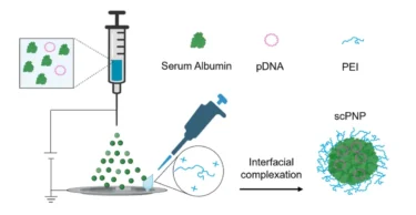 Nanopartiküller, elektrohidrodinamik jetleme adı verilen bir yöntemle üretiliyor. Bu yöntemde protein ve nükleik asit karışımı bir elektrik alan içinden hızlandırılıyor. Su hızla buharlaşırken protein, taşınan genetik yükün etrafında yoğunlaşıyor. Hücreler partikülleri içine aldıktan sonra bunlar endozomlara giriyor. Burada pozitif yüklü yüzey polimerinin osmotik bir dengesizlik oluşturduğu, suyu içeri çekerek endozomun parçalanmasına ve yükün hücre içine salınmasına yol açıyor.