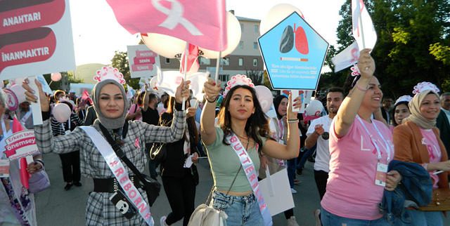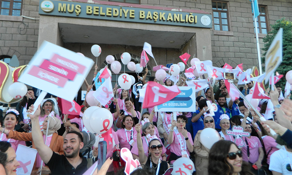 AB komisyonu, DSÖ, Muş Belediyesi, Alparslan Üniversitesi yanında çok sayıda hasta dayanışma derneğinin katılımıyla düzenlenen etkinlikte, “Kanserle mücadele için farkındalık yürüyüşü” de gerçekleştirildi. Muş belediyesi önünde bir araya gelen gönüllüler ve vatandaşlar, giydikleri pembe tişörtle müzik eşliğinde İstasyon Caddesi’nden Millet Bahçesi’ne kadar yürüdü.