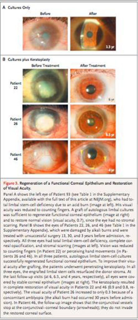 Kök hücre tedavisi ile kornea nın yenilenmesi aslında kişinin kendi gözünden alınan kök hücre ile tedavi edilmesi prensibine dayanmaktadır ve bu uygulamada Holoclar adında bir kimyasal kullanılmaktadır.