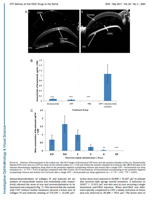 Anti-VEGF damla: Birmingham Üniversitesi araştırmacıları enjeksiyonun yerini alacak bir damla geliştirdiler. Geliştirilen bu damla birkaç dakika içerisinde hücre zarından geçerek hücreye nüfuz etme özelliğine sahip bir peptitten oluşuyor (CPP:cell-penetrating peptide). İlaç göze damlatıldıktan hemen sonra dakikalar içerisinde retina üzerindeki sarı noktaya yani keskin görüşten sorumlu bölgeye ulaşıyor.