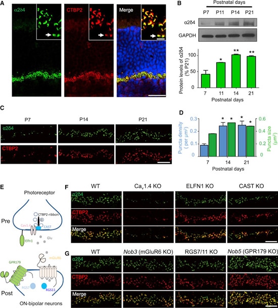 Yapışmayı α2δ4 sağlıyor: Florida campus of The Scripps Research Institute (TSRI) tarafından yapılan araştırmada, α2δ4 adında bir başka proteinin ELFN1proteinini aktive ederek kalsiyum kanallarınının açılmasına olanak sağladığı ve buna bağlı olara Glutamat geçişine izin verdiği bulundu.