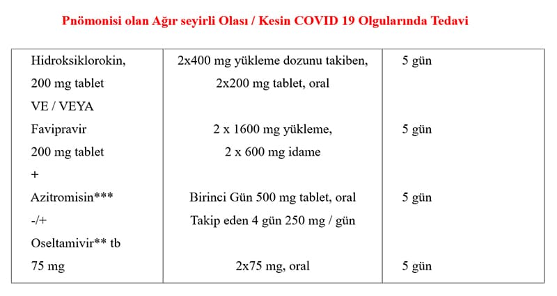 Ayrıca sekonder bakteriyel infeksiyonların önlenmesine yönelik olarak atipik pnömoni etkenlerini de kapsayan uygun dozda antibiyotik eklenebilir.