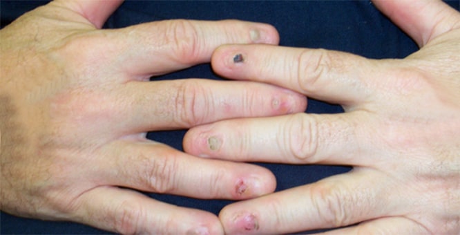 Deride genellikle ayak ve el bileklerinde görülür. Deride oluşan düz yüzeyli kabartılı lezyonlar, ciddi bir kaşıntı oluşturur. Kırmızı veya mor renklerden oluşan kabarcıklar, bacak, kol, boyun, alt sırt, bilekler ve cinsel bölgelerde görülür. Bazı durumlarda saç ve tırnakları da etkiler. Lezyonlar, her bölgede farklı bir görünüme sahiptir.(2)