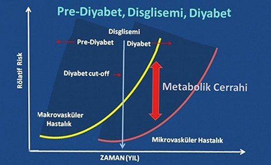 Doç. Dr. Çelik: Tip 2 diyabet tanısı aldığınız gün insülin depolarınızın yarısını kaybetmişsiniz demektir. O anda makro-vasküler hasar süreci prosesin %20-25’lik kısmını tamamlamıştır ve mikro-vasküler hastalık prosesi ise %15-20’lik bir kısmını tamamlamış durumdadır. Aradan yıllar geçtikten endojen rezervlerinizin %90’nını kaybettikten; mikro ve makro-vasküler hastalık süreci %90’na ulaştıktan sonra ameliyat olmaya karar veriyorsunuz.