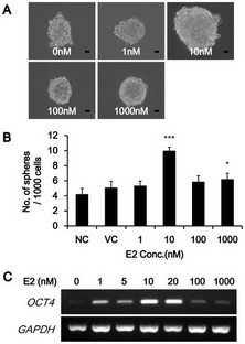 Results demonstrated that TCDD (100 nM) and bisphenol A (10 µM) increased the number and size of the mammospheres, as did estrogen (10 nM E2). By monitoring a cancer stem cell marker, OCT4, the stimulation by these chemicals was correlated with the increased expression of OCT4. On the other hand, metformin at 1 and 10 mM concentration dramatically reduced the size and number of mammospheres.