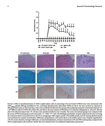 Florida Üniversitesi’nden Chang-Qing Xia ve ekibinin 6 Haziran 2015 tarihinde Journal of Immunology Research dergisinde yayınladığı araştırmada, miyelin kılıftan elde edilen Otoantijenler ile Dalak hücrelerinden oluşan bir karışımın MS hastası farelere enjekte edildiğini ve başarılı sonuçlar elde edildiğini belirtiliyor. Dergide ayrıca bu yöntemin insanlarda da başarılı olacağının tahmin edilidiği belirtiliyor.