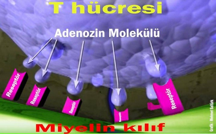 Linda Thompson bu konuda şöyle diyor. “Kafein, sinir hücrelerinin üzerinde yer alan Adonosin Reseptörlerinibloke ederek T-Hücrelerinde bulunan Adonosin moleküllerinin bu reseptörlere bağlanmasını, dolayısıyla onlara zarar vermesini engelliyor. Ancak, kafeinin insan vücudunda da aynı etkiyi gösterip göstermediğini tam olarak bilmiyoruz“