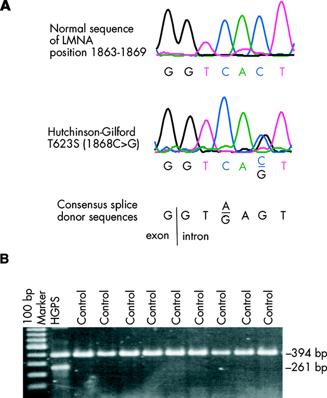 Sebep: Hastalığa LMNA geninde meydana gelen mutasyonlar neden olur. LMNA geni, lamin A adında bir protein kodlar ve bu protein hücre zarının bileşenidir. Mutasyon nedeni ile hatalı üretilen lamin A proteini hücre zarını kararsız hale getirerek hücre çekirdeğinin zarar görmesine sebep olur. Sonuç olarak, DNA replikasyonu gibi sayısız hücre bölünme süreci artık doğru şekilde çalışamaz.