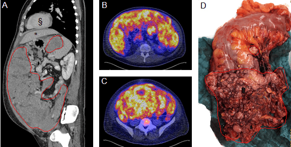 Tedavi: DSRCT, günümüzde agresif, multimodal bir terapi konsepti ile tedavi edilmektedir. Multimodal, farklı terapötik yaklaşımların birbiriyle birleştirilmesi ve birkaç tıp disiplininin el ele çalışması anlamına gelir. DSRCT’li hastalar genellikle önce kemoterapi alırlar. Mümkünse tümör dokusunun tamamen çıkarıldığı bir operasyon yapılmalır. Ameliyatın bir parçası olarak karın bölgesine lokal kemoterapi de uygulanabilir. Ameliyattan sonra bazen radyasyon veya kemoterapi yapılır.