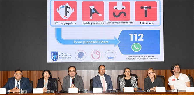 112 Acil sağlık Hizmetleri başkan Yardımcısı Doç. Dr. Mehmet Ergin “İnme engellenmesi, tanısının konması ve tedavi edilmesi bakımından strateji geliştirmenin en zor olduğu hastalıklardan birisi. İnme hastalığının zorluklarının altında da iki önemli neden ön plana çıkıyor; sık görülen bir hastalık olduğu gerçeği ve tanıdan tedaviye giden süreçte sürekli olarak zamana karşı yarış içerisinde olduğunuz bir hastalık olması. Diğer bir ifade ile tanı-tedavi anlamında yapacağınız planlamada tüm ülke genelini kapsayacak bir strateji gütmeniz ve bu strateji bünyesindeki hedeflere hızlı bir şekilde ulaşmanız gerekiyor. Ankara’da 112 sistemi bu yolda planlarını etkin şekilde uygulamaktadır” dedi.