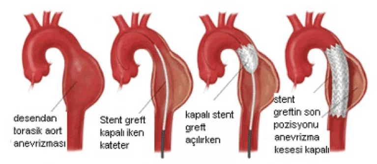 Aort anevrizma ve disseksiyonlarının konvansiyonel tedavisi cerrahi yöntemler kullanılarak hasta aort segmentinin sentetik damar grefti ile değiştirilmesidir. Endikasyonlar; semptomatik olması (rüptür, diseksiyon), çapı > 5cm ve büyüme hızı > 1cm/yıl, psödoanevrizma varlığı.