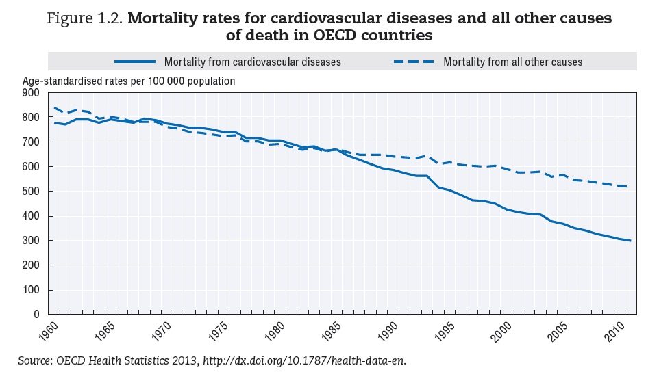 Ekonomik İşbirliği ve Kalkınma Örgütü (OECD) raporuna göre, üye ülkelerde son 50 yılda kalp ve damar hastalıklarından ölenlerin oranı %60 azaldı. Rapor, OECD’ye üye ülkelerin kalp ve damar hastalıkları konusundaki genel tablosunu ortaya çıkardı. Üye ülkelerde son 50 yılda kalp ve damar hastalıklarından ölenlerin oranının %60 azaldığına işaret edilen OECD raporuna göre, bu ülkelerin ortalaması alındığında 100 bin kişide 252 kişi kalp ve damar hastalıklarından hayatını kaybediyor.