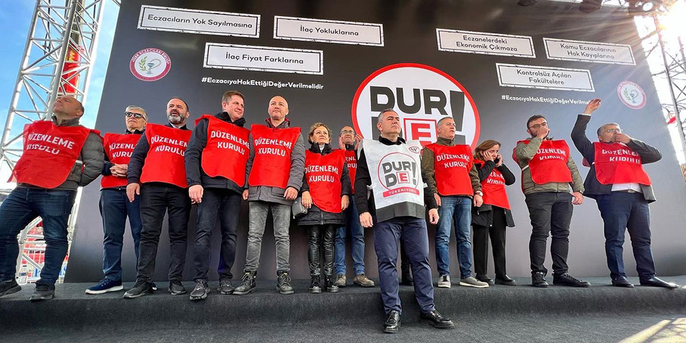 TEB Başkanı Arman Üney daha önce deklarasyonla kamuoyuna açıklanan taleplerini mitingde de dile getirerek, eczacıların taleplerini şöyle sıraladı: