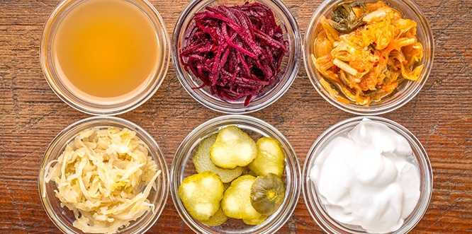 Ancak canlı bakteri içeren fermente gıdalarda da doğal olarak da oluşabilir. Probiyotik ürünler arasında yoğurt, kefir, peynir, lahana turşusu, boza gibi fermente yiyecekler, bebek mamaları ve takviyeler bulunur. Probiyotikler, bağırsak hareketlerinin düzenlenmesine yardımcı olur; kabızlığın, ishalin önlenmesinde, çok etkilidirler.