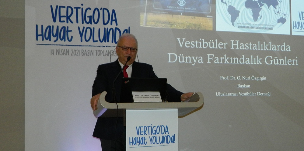 Covid-19’un oluşturduğu stres ve anksiyetenin vertigo hastalığını tetiklediğini ve görülme sıklığını artırdığını söyleyen Uluslararası Vestibüler Derneği Başkanı Prof. Dr. Nuri Özgirgin, pandemiyle beraber artan çalışma saatlerinin, uykusuzluğun, yoğun endişe ve stresin vertigo vakalarında önemli şekilde artışa neden olduğuna işaret etti. Prof. Dr. Nuri Özgirgin, 15 Nisan Dünya Vertigo Günü nedeniyle “Vertigoda Hayat Yolunda” başlığıyla bir basın toplantısı düzenledi.