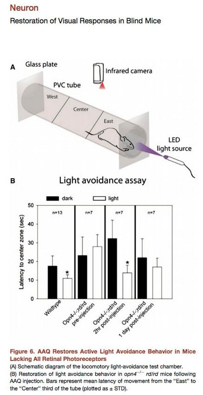 Görme yeteneğini kaybetmiş kişilere şimdiye kadar kök hücre tedavisi ve retinaya chip yerleştirme gibiretina-1 kısmen başarılı olan metotlar uygulanıyordu. Yeni keşfedilen basit ama etkili bir kimyasal madde görme yeteneğini kaybetmiş kişilere büyük umut vaad ediyor. Retina körlüğüne çare olacağı tahmin edilen bu kimyasal madde, şimdilik farelerde denendi ve olumlu sonuçlar verdi. Retina körlüğü bulunan farelerin gözüne damlatılan Acrylamide-Azobenzol-Quaternär-Ammonium(AAQ) adındaki bu kimyasal madde, retina hücrelerini birkaç gün içerisinde ışığa duyarlı hale getiriyor.AAQ nasıl çalışıyor1a