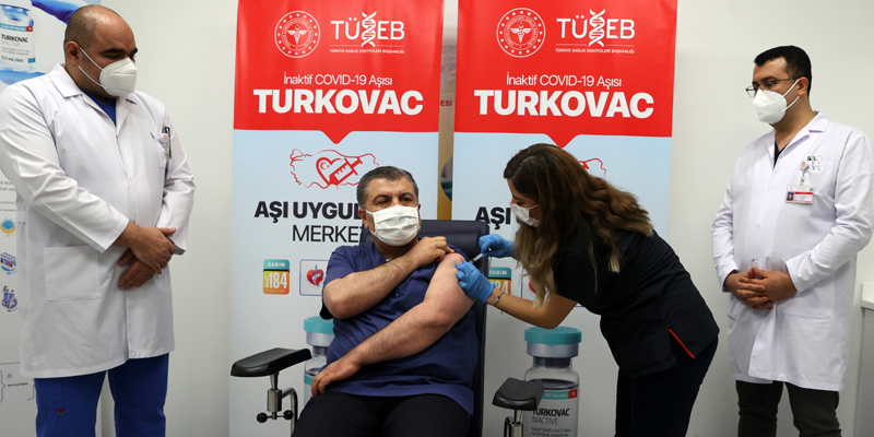 Sağlık Bakanı Fahrettin Koca ve Bilim Kurulu üyeleri, koronavirüse (Covid-19) geliştirilen yerli aşı Turkovac’ı, hatırlatma dozu olarak yaptırdı. Aşının ardından açıklamada yapan Koca, “Özellikle bugün önemli bir gün. Yerli aşımız Turkovac’ı salgın nedeniyle hayatını kaybeden vatandaşlarımıza adıyoruz. Turkovac’ı son 50 yıldan sonra hücreden başlayarak üretilen ilk aşımız. Türk bilim insanlarımız tarafından geliştirilen bu aşının tarihi önemde olduğunu ifade etmek istiyorum. Vatandaşlarımızı Turkovac’la aşı olmaya, özellikle hatırlatma dozlarını Turkovac’la yaptırmalarını ısrarla tavsiye ediyorum” diye konuştu.